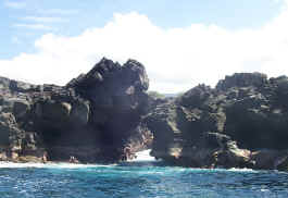 Rafting and Snorkeling Monday morning we climbed aboard a six person commercial raft operated by Sea Quest Rafting and headed down the western coast of the island to the marine perserves of Puuhonua o Honauna (ancient place of refuge for defeated warriors) and Kealakekua Bay. On our way south we were accompanied by a pod of dolphins playing along side of the raft.