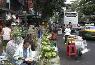 We tour the Royal Chapel, Wat Phra Kaeo, which attests to the major role of Buddhism for the Thai people. The sheer fantasy of the gilded monuments, ornate gabled soaring roofs and decorated pediments, ceramic tiles, floral motifs and painted murals contribute to the stylized Thai architecture.