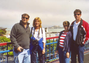 July 7th, Monday. They arrived! Jon's sister, Sara, and her husband Rusty were right on time at the SFO airport. We collected their luggage and started our week of touring with a ride through downtown San Francisco and on across the Golden Gate Bridge to Sausalito.