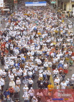 One Bay to Breakers tradition is to dress in costume - see the salmon swimming upstream. This year being chased by a sushi chef. Another tradition is to dress in no costume!