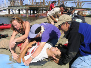 We did a mock disaster scene on Richardson Bay with a lot of simulated kayaker injuries
