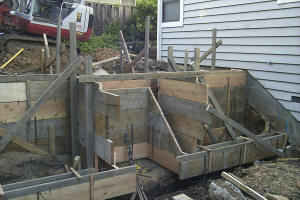 While Jon was at Harvard, the crew demolished the old patio and prepared the formwork for the new patio and stairways.