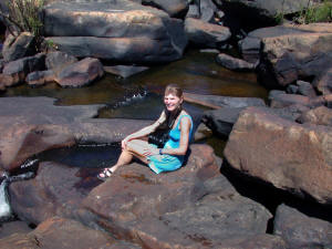 Bruce Ellison, the owner of the Bush Camp, and his guest have arrived at the camp when we return from our morning adventure. After lunch, we launch two boats for barramundi fishing. Bruce and his crew seem to be very seasoned; however, Jon managed to hook a big one - that eventually got away. We had a great fish feast for our final dinner at the camp. The next morning we flew directly to El Questro. |