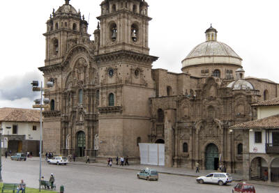 granite from Sacsayhuamain. The facade is Renaissance with a lavish Baroque