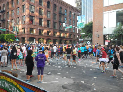turn us loose on the Washington streets. We did our annual Bay to Breakers. This year, due to Jon's knee problems we walked rather than ran. Walking let us see more of the city (it is easier to see the houses when not exerting ourselves up Hayes St. Hill, for example). Our friends who usually go with us did not go this year so we went over to Sam's in Tiburon for brunch instead.