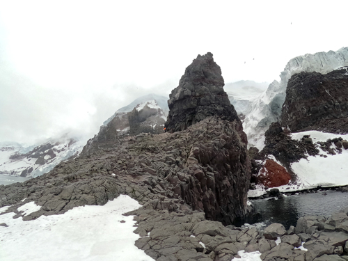 While crossing the Bellingshausen Sea, we stopped at Peter I Island, a remote island inhabited only by seabirds and seals, and claimed by Norway. It is volcano that rises 4000 meters (~12,000') from the sea floor and another 1600 meters (~4,800') above sea level. We landed on the island (a pretty exciting landing as the zodiak went up a rock face at a pretty extreme angle) and did a zodiak tour nearby. Here is the Daily Expedition Report and Care's Rizbee on the Road blog for Peter I Island.